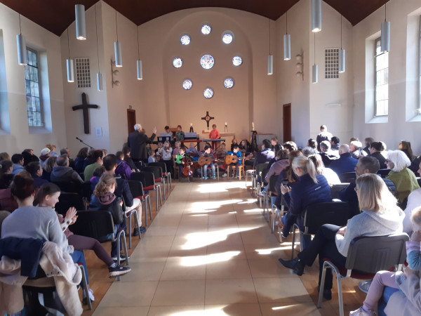 Vor den Osterferien versammelte sich die Schulgemeinde mit einigen Eltern in der entwidmeten evangelischen Kirche zu einem Gottesdienst.