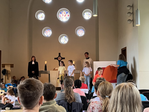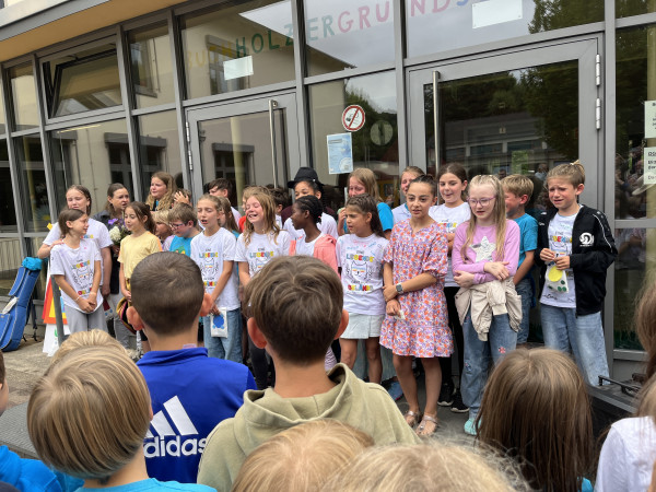 Nach einem Abschiedsgottesdienst in der evangelischen Kirche, wurde zum Ende der Grundschulzeit unter Tränen das Lied "Alte Schule, altes Haus" gesungen.